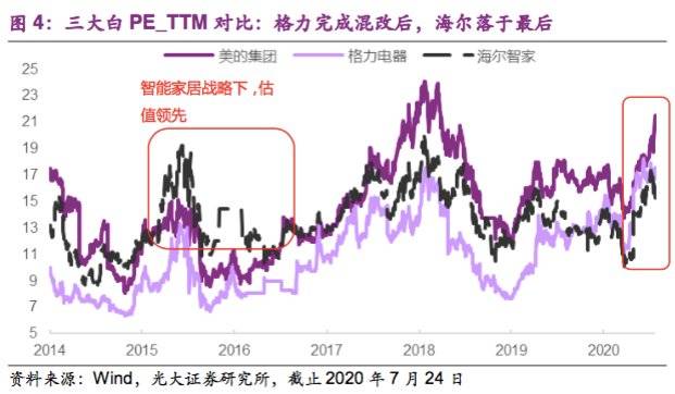 美的也因为清晰、集中的股权,长期成为三巨头中估值最高的公司。而随着现在格力、海尔新一轮完成股权改革、估值水平有望改善,白电三巨头的产业竞争也将进入全新阶段。