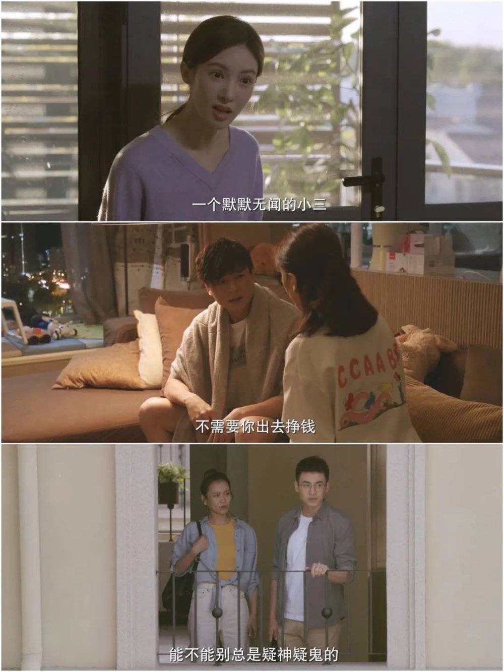 好了,又有人说了,这剧拍的是女性题材,我看这个还不行吗? 如果要我给这部剧的女性表达下个定义,大概可以称为: 内心透着各种不情愿的,老直男式女性主义。 首先,“直男式”。 意味着剧里的女性表达非常刻板,比对着话题的设计感很重: 金晨饰演的戴小雨,谈婚论嫁了发现自己“被小三”多年;啜妮饰演的司梦,有文学梦却受困家务和育儿的家庭主妇;隋源饰演的冯希,为博士后男友各种付出,不光毫无自我,还要时不时承受出轨怀疑。 刻板也罢,更要命的是简单粗暴。 比如一上来,金晨发现男友秘密的过程,编剧都懒得去编得更有逻辑、更符合生活,一个个女性人物浑身标签,自带话题,就是不像个真人。
