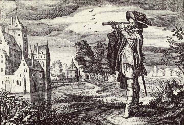 早期的荷兰望远镜 图片来自:WIKI 在获得了能放大 30 倍的望远镜后,人类好像拿到了新世界大门的钥匙。伽利略成了人类历史上第一个看到木星的卫星的人、第一个看到土星光环的人、第一个清楚地看到月亮表面的环形山和山谷的人、第一个观测太阳黑子并得出太阳自转的人。他改良的折射望远镜,让天文学进入快速发展期。但因为光学原理,折射望远镜不可避免地存在色差问题,在当时想要解决这个问题,只有加长望远镜的焦距。夸张的时候,有人造出了焦距 180 米的无筒望远镜,但这种望远镜根本没有实用性。