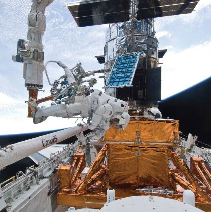地面不行,把望远镜搬到天上呢? 既然地球上环境对天文观测的干扰因素那么多,为什么不把天文望远镜搬到宇宙中呢?早在 1946 年,天文学家莱曼·斯皮策就提出了空间天文台的设想。直到 1990 年,哈勃望远镜终于随着发现号航天飞机腾空,被安放在近地轨道。哈勃望远镜口径为 2.4 米、长度约 16 米,虽然尺寸还不到地面望远镜的零头。但它在没有大气干扰的太空能拍出比地面望远镜分辨率更高、效果更好的图片,同时也能观测地面望远镜无法观测的红外紫外波段。