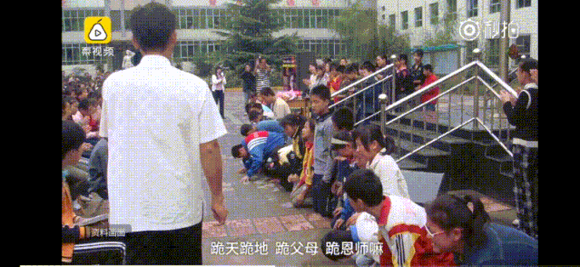 最大的杀器,就是在台上领唱一首《我的中国心》,卓越的台风和台下的整齐跟唱让人以为误入了哪个大型演唱会现场,用这样的阵仗来唤出莘莘学子们内里那颗感恩的心。 最后,再多的眼泪,再大的悔悟,不如一次诚挚的行动,没有什么是一声道歉不能原谅的,如果有,那就跪下道歉。 除了下跪,在行动这一part的形式还包括,和父母拥抱,给父母洗脚,大声向父母宣誓“我再也不玩游戏了”等等。
