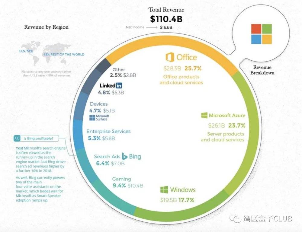 其三,通过收购补充产品线,消灭潜在的竞争对手。在Office 365推出后不久,微软就宣布以85亿美元的价格收购网络音视频服务Skype,这是微软迄今为止最大的一笔收购(可惜的是,就在同年Zoom诞生,如今Zoom已经成为音视频会议服务领域的老大)。 最近几年里,微软针对小型创业企业的收购步伐一直没有停下,包括Wunderlist、Yammer和Intentional Software等等,这些收购成为微软推出Whiteboard白板协作应用程序的基础。 总起来看,如今的微软在数字化工作/生产力工具领域依然具备压倒性优势,针对微软的“革命”早就在进行,只是一直没有出现堪称成功的里程碑事件。 在纳德拉的领导之下,微软在2019年成为第三家超过1万亿美元市值的科技公司(前两家是苹果、亚马逊),而Windows、Office等等这些最闪亮的标签都正在微软的商业画布中慢慢淡去。 微软曾经有过一系列产品的失败,但在关键产品上也取得了巨大的成功。有些公司可能拥有与微软一样的能力,但很少有公司能够承担与微软一样多的失误。 放眼未来,需要微软继续回答的是,当他们把新产品成功交付到老客户手中之后,他们该如何发现并赢得那些从未有过微软产品经验的新客户?创新公司通过创新体验激发出了一大批新客户,这正是Zoom、 Slack等这些新竞对们价值飞涨的根本所在。