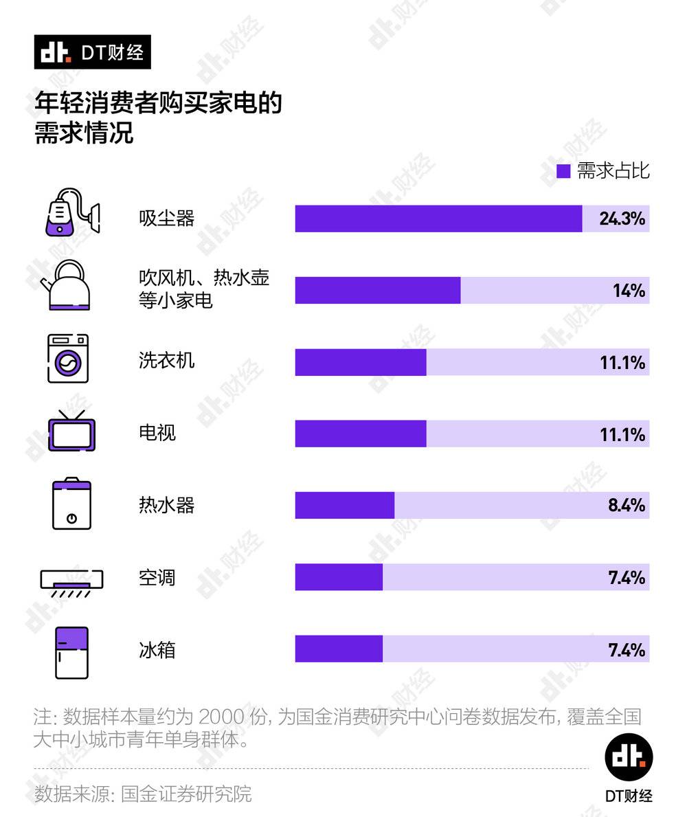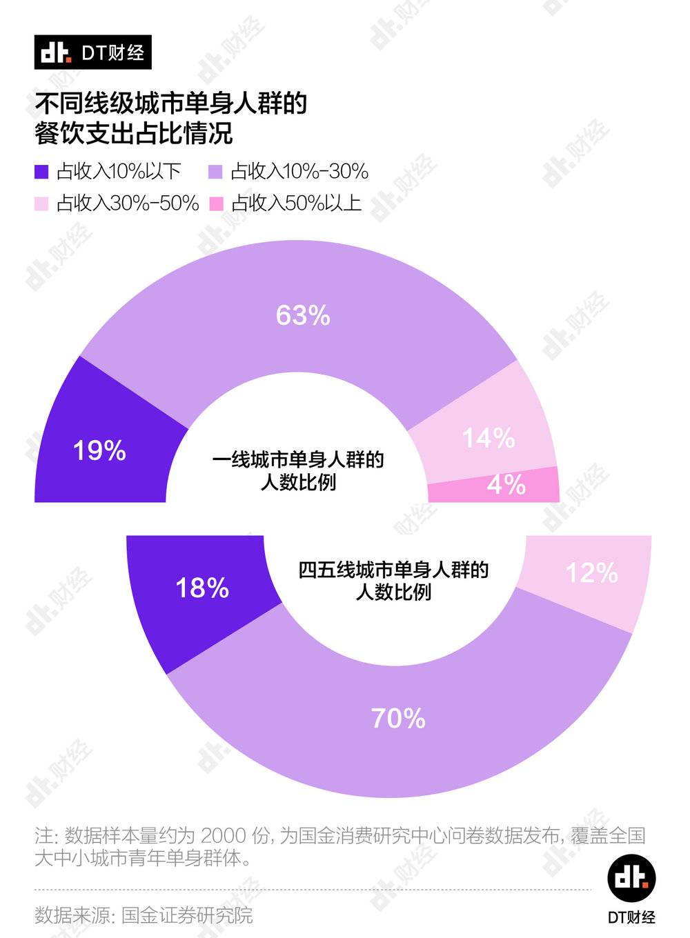 题图来自视觉中国,本文来自微信公众号:DT财经(ID:DTcaijing),作者:何书瑶、阿米,编辑:小唐,设计:郑舒雅 “一个人住的第3年,对我而言,独居的妙处,用两个字来形容,清净。” “一个人,吃自己喜欢的食物,睡自己喜欢睡的位置,走自己喜欢的小路,养自己喜欢的宠物。” 在知乎提问“为什么你更愿意一个人生活”下,数千人在回答自己对于独居生活的认可。 这似乎说明,独居青年早已不是年轻人中的非主流群体。民政部2018年数据显示,中国的独居成年人口已经超过7700万。在全国一人户的家庭样本统计中,20~34岁的独居家庭占比达到约38%。 当独居人群不断扩大,这个群体也开始被社会认识,他们的生活方式逐渐被主流的舆论场所关注。今年5月,腾讯视频上线的《让生活好看》就是一部以年轻艺人的独居生活为切口的观察类综艺。节目邀请了95后的费启鸣、90后的郑爽、许魏洲、伍嘉成、80后的柳岩等,关注了一系列独居年轻人会遇到的生活问题。 节目嘉宾所处的20~34岁,正是独居青年主要覆盖的年龄段。这些从传统家庭单位中脱离出来的年轻人,已经成为当下社会的消费主力军。他们与过去大家庭截然不同的消费需求,催生出新的商机和细分的消费市场。 那么,独居青年们的生活方式和消费选择是如何形成的?其中又蕴含了哪些消费趋势和商业秘密?我们尝试用数据,来理解独居经济。 独居青年是谁? 美国纽约大学社会学教授艾里克·克里南伯格曾在《单身社会》一书中,指出欧美、日本等发达经济体都先后进入了“单身社会”——即单身人口在大城市里逐渐超越多口之家的社会形态。 我们可以将年轻的单身人口与独居青年划上约等号。这些年轻人,由于尚未成家,也没有太多的家庭负担,基本具有这样几个特点:大多集中在一二线城市、具备一定的消费水平、月光族比例较高。 在贝壳找房针对30个城市的独居人口统计中,排名前五的城市分别是上海、重庆、北京、广州和深圳,其中TOP 4的城市集中了总数41%的独居人口。国金证券也指出,超过一半的单身青年都居住在一线城市和超二线城市。