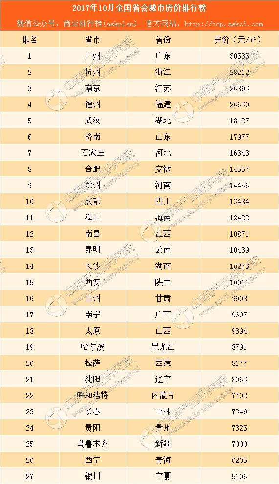 石家庄以16343元/平米的成绩排名第7位,在此之前是广州、杭州、南京、武汉、福州、武汉和济南。 再翻出2017年省会城市GDP排名单。
